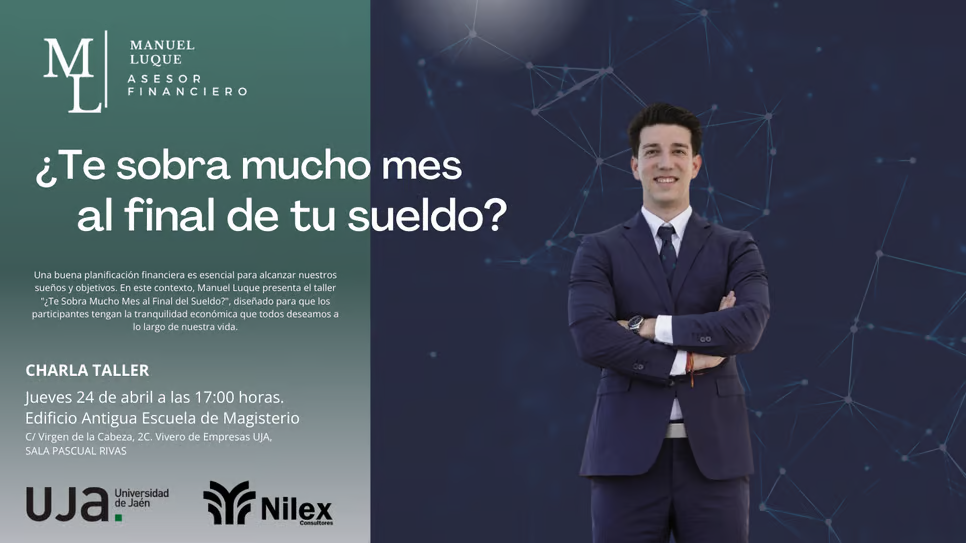 Una buena planificación financiera es esencial para alcanzar nuestros sueños y objetivos. En este contexto, Manuel Luque presenta el taller "¿Te sobra Mucho Mes al Final del Sueldo?, diseñado para que los participantes tengan la tranquilidad económica que todos deseamos a lo largo de nuestra vida.