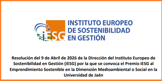 El Instituto Europeo de Sostenibilidad en Gestión (iESG), como Instituto Interuniversitario de Investigación de las Universidades de Almería, Cádiz, Granada, Jaén y Pablo de Olavide y con sede en la Universidad de Jaén, tiene entre sus objetivos estratégicos la transferencia de conocimiento y el impulso de la innovación y el emprendimiento sostenible. En este marco, el iESG convoca, en el ámbito de la Universidad de Jaén, el “Premio iESG al Emprendimiento Sostenible en la Dimensión Medioambiental o Social”.